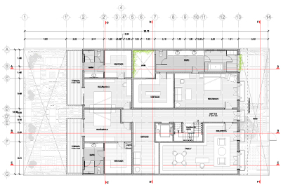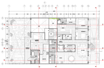 Se proyectó construir un edificio de 7 niveles, para alojar 3 departamentos diferentes dimensiones y diferentes usos múltiples. El edificio cuenta con una altura de 15 metros sobre el nivel de banqueta y dos sótanos. El acceso al edificio se da a través de la planta baja por medio de una rampa para vehículos y un acceso peatonal con escaleras para bajar al lobby en el primer sótano.