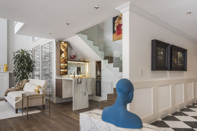 La volumetría y diseño de la fachada cumple con el entorno de Polanco, donde se respetan las proporciones de vanos y macizos, el uso armónico de los materiales y acabados, la orientación e iluminación adecuada. Encontrar ese balance entre una una arquitectura más clásica con algunos elementos contemporáneos fueron el resultado del proyecto. Siendo ya un edificio único en la zona.