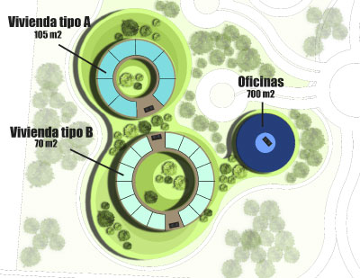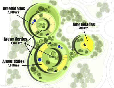 La parte posterior del terreno, será destinado para lotificación y venta de terrenos, cumpliendo con los requisitos solicitados por el Master Plan. El diseño único en forma radial responde a la panorámica que se busca lograr, la integración con el medio, aprovechando que el terreno se encuentra en la parte más alta de la ciudad.