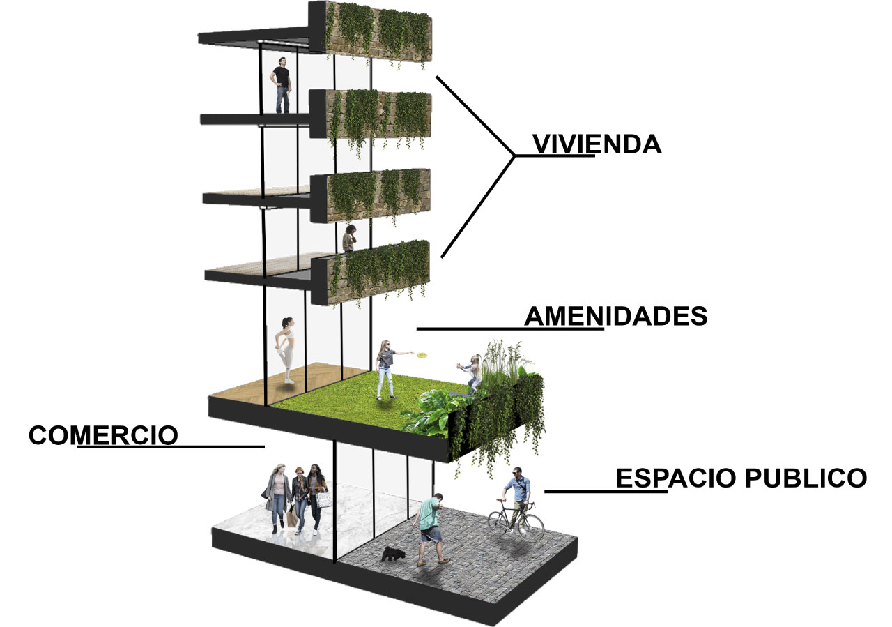 Un espacio que revaloriza las zonas y fomenta la actividad económica de los barrios, viviendo hacia los espacios interiores.