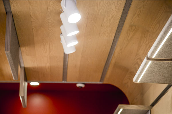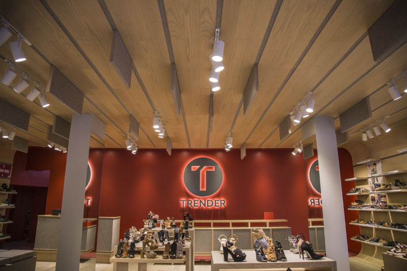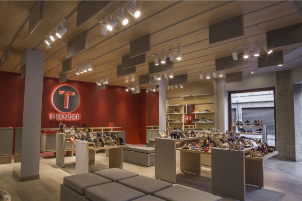 Permeabilidad visual desde las avenidas peatonales como punto fundamental del diseño, trabajar en esquina, donde los ángulos son distintos. Explorar con madera tanto en pisos, muros y plafones, formando un túnel de exhibición, con un remate intenso en color rojo, donde el diseño de iluminación juega un papel clave en los contrastes para enfatizar los productos.