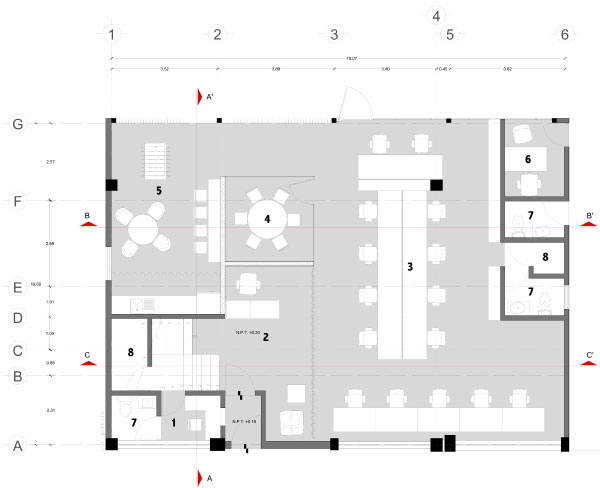 La intención fue insertar un espacio dentro de otro muy distinto en especie y de manera independiente, que adoptara la escencia de una oficina creativa, pero que al mismo tiempo reflejara en apariencia y acabados un look urbano.